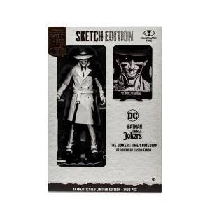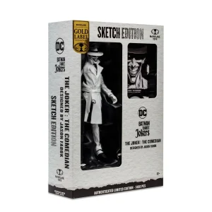 Entertainment Earth Exclusive! The Joker casts a grinning shadow over Gotham with monochromatic sketch-edition deco! Fully articulated, this DC Multiverse The Joker Comedian Sketch Edition Gold Label 7-Inch Scale Action Figure – Entertainment Earth Exclusive measures approximately 7-inches tall. Inspired by the Batman: Three Jokers comic series, he comes equipped with a crowbar and a camera to document his mayhem. Also included is an exclusive art card featuring a sketch of The Joker designed by Jason Fabok on one side and a numbered certificate of authenticity on the other. The sinister 7-inch scale black-and-white Comedian is showcased in designer window-box packaging with an exclusive card stand and display base. He’s limited to 7,400 pieces, so collect this crazed clown while you can! Ages 12 and up.