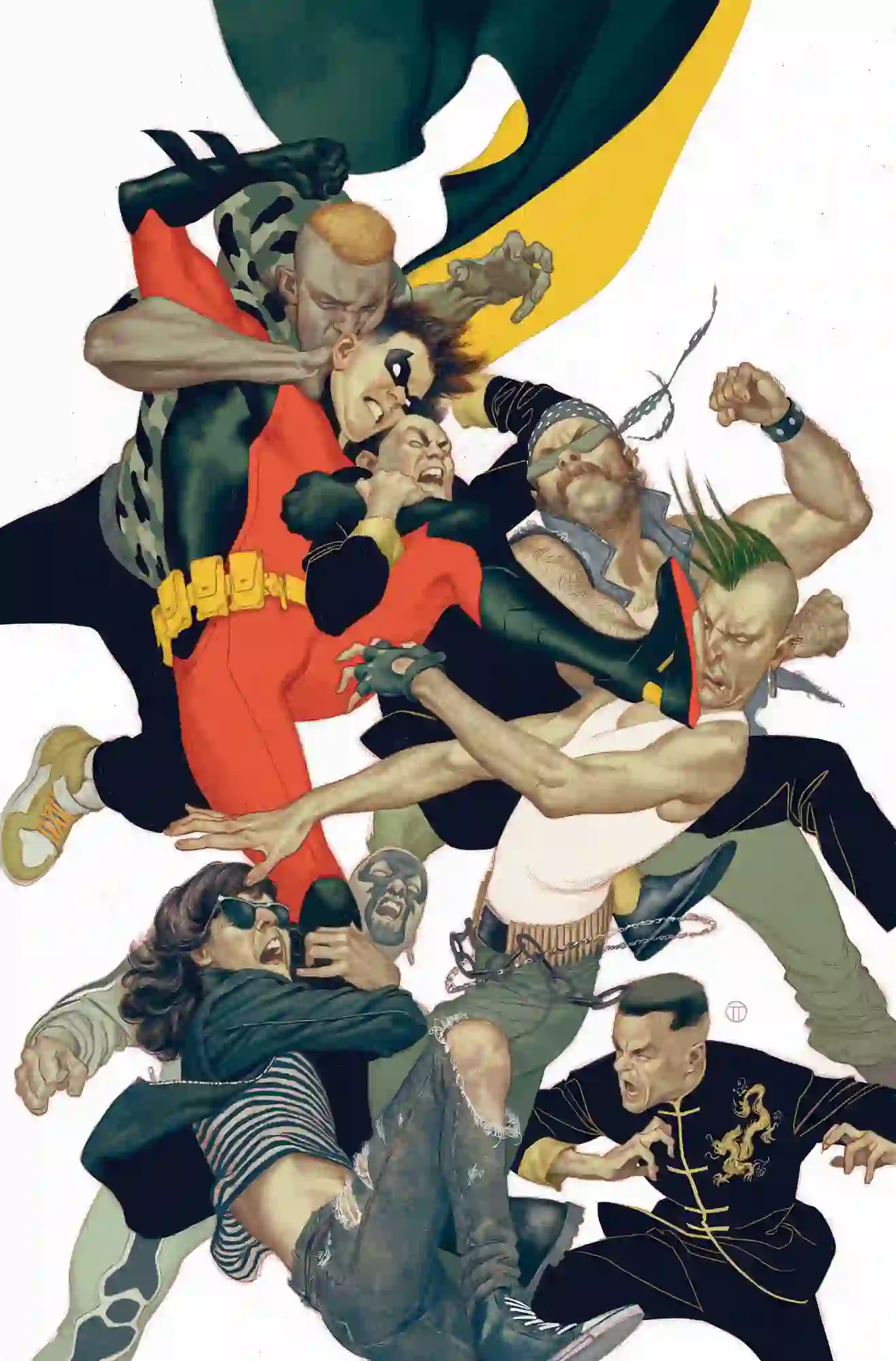Injured, cuffed, and tossed in the back of a GCPD paddy wagon with a dozen uncuffed and violent criminals, Robin (Tim Drake) will have to use everything he’s learned from the Dark Knight if he hopes to survive his own dark night. Will Batman arrive in time to help him, or will this mission change the way the city and the GCPD view the Dynamic Duo forever?